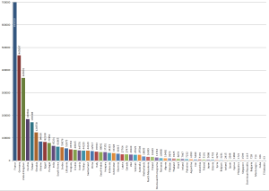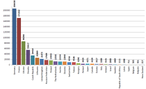 2014 年的参与人数(36 个国家总计 927968 名参与者)。