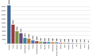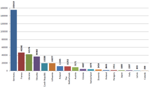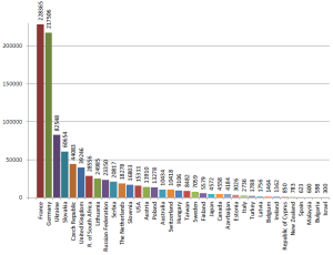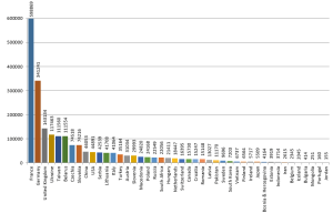 2013 年的参与人数(29 个国家总计 728328 名参与者)。
