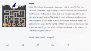 流程图判断题:如“迷宫寻宝”题,需根据预设移动规则(向下→向右→向左)预测最终位置。