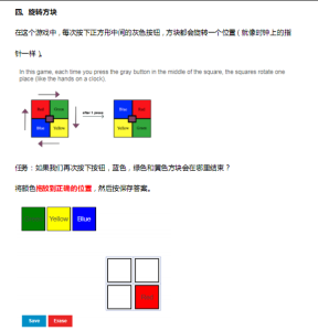 交互式拖拽题:如“旋转方块”题目,需将颜色块拖拽至正确位置后保存答案