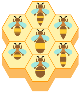 You see that some bees can be placed in only one cell of the hive and others can be placed in different cells. For example, bee 2 can only be placed in one cell, because there is only one way to place the bee’s part of the hive in the complete hive.