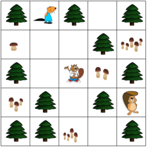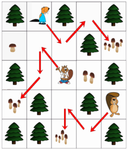 Each wants to go where there are mushrooms. Arrows in the picture to the right show the directions the beavers will walk.每只都想去有蘑菇的地方。