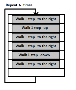 The instruction clicked first will go at the top, the second below that, etc. This pattern of instructions will be repeated six times.