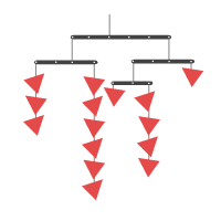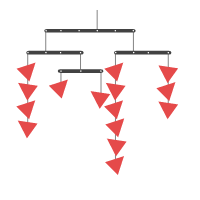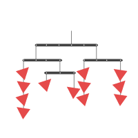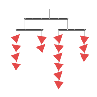 Also, each stick has a hanging point, from which it is attached to a stick further above (or to the ceiling).