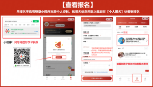用报名填写的接收短信手机号登录【阿思丹国际学术挑战】小程序,完善个人资料和提交的报名信息匹配上,就可以在【个人报名】处看到报名。