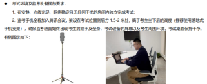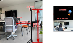 手机监考设备位置摆放不合格,考试期间监考老师多次提醒仍不改正,则考试成绩无效!可以进入会议自己调试,参考摆放图如下: