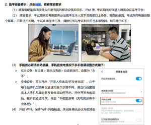 如果手机没有设置屏幕常亮,请腾讯会议监考用设备后置摄像头,需要家长在设备前注意屏幕,屏幕变暗用手点一下。