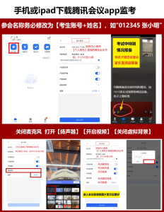 可使用【手机/平板pad】作为监考设备,需要下载腾讯会议app进行监考(摄像头、麦克风可以正常使用)请提前下载“腾讯会议”app