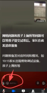 考试过程中遇到的突发事件(网络、考试设备等)导致家长进入考试监考画面或者孩子上厕所离开考试监考画面,需要家长在孩子提交试卷后在腾讯会议聊天框发消息打字报备。